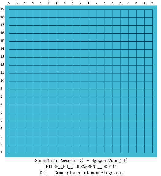 Last move : 0-1 2022 December 16 15:40:5 [Event "FICGS__GO__TOURNAMENT__000111"] [Site "FICGS"] [Date "2022.11.16"] [Round "1"] [Black "Sasanthia,Pawaris"] [White "Nguyen,Vuong"] [Result "0-1"] 0-1 This go game has been lost on time (started : 2022.11.16 1:41:11) Follow this game move after move (download)Don't reduce your own liberties. (Bill Taylor) Memory is a crazy woman that hoards colored rags and throws away food. (Austin O'Malley)