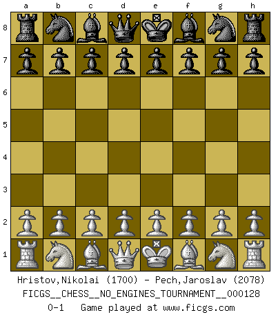Last move : 0-1 2023 July 7 2:38:23 [Event "FICGS__CHESS__NO_ENGINES_TOURNAMENT__000128"] [Site "FICGS"] [Date "2023.05.27"] [Round "1"] [White "Hristov,Nikolai"] [Black "Pech,Jaroslav"] [Result "0-1"] [WhiteElo "1700"] [BlackElo "2078"] 0-1 This chess game has been lost on time (started : 2023.05.27 18:43:7) Follow this game move after move (download)Examine moves that smite! A good eye for smites is far more important than a knowledge of strategical principles. (Purdy) Ich organisiere ein großes Turnier, was mich etwa 120000 Dollar kostet. Ich denke, das ist das erste Mal in der Schachgeschichte, daß ein Schachgroßmeister auch als Mäzen auftritt. (Miguel Najdorf) Una compensación adecuada por un sacrificio es tener una combinación sólida que conduce a una posición ganadora; una compensación adecuada por una metida de pata es dejar a tu oponente arrebatar una derrota de las fauces de la victoria. (Bruce A. Moon) Les échecs, c'est l'art d'analyser. (Mikhail Botvinnik) Live, lose, and learn, by observing your opponent how to win. (Amber Steenbock)