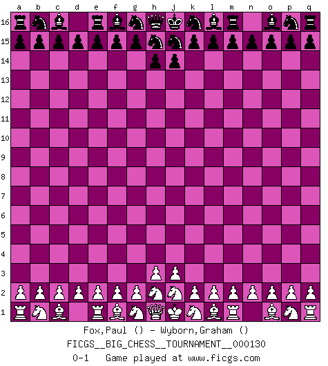 Last move : 0-1 2023 June 28 17:36:47 [Event "FICGS__BIG_CHESS__TOURNAMENT__000130"] [Site "FICGS"] [Date "2023.06.28"] [Round "1"] [White "Fox,Paul"] [Black "Wyborn,Graham"] [Result "0-1"] [WhiteElo ""] [BlackElo ""] 0-1 Follow this game move after move (download)I'd rather have a Pawn than a finger. (Reuben Fine) Ich verlor meine Bürgerrechte, mein Gehalt wurde mir nicht mehr bezahlt und ich wurde zensiert und durfte nicht mehr ins Ausland reisen. [nach dem Match Fischer-Taimanov 6:0] (Mark Taimanov) Observen a Garry Kasparov. Después de una derrota, invariablemente el gana la próxima partida. Prácticamente hace pedazos a su siguiente oponente. Eso es algo que tenemos que aprender a lograr. (Maurice Ashley) Le jeu d'échecs fait naître et fortifie en nous plusieurs qualités précieuses dans le cours de l'existence, telles que la prévoyance, la circonspection, la prudence, et la persévérance. (Benjamin Franklin - 1783, la morale des échecs) When you stop learning you start dying. (Scott Adams)