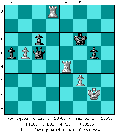 Last move : 1-0 2023 November 26 13:38:24 [Event "FICGS__CHESS__RAPID_A__000296"] [Site "FICGS"] [Date "2023.07.11"] [Round "1"] [White "Rodriguez Perez,Rene"] [Black "Ramirez,Eliecer"] [Result "1-0"] [WhiteElo "2076"] [BlackElo "2065"] 1.e4 e5 2.Nf3 Nc6 3.Bc4 Bc5 4.O-O Nf6 5.d3 d6 6.a4 a5 7.Bg5 h6 8.Bh4 g5 9.Bg3 O-O 10.c3 Kg7 11.Nbd2 Ba7 12.Re1 Nh7 13.d4 exd4 14.cxd4 Nxd4 15.h3 Nc6 16.Qc2 Nf6 17.Rad1 Nh5 18.Bh2 Nf4 19.e5 dxe5 20.Nxe5 Nxe5 21.Bxf4 Bxf2+ 22.Kxf2 Nxc4 23.Ne4 Qe7 24.Qc3+ Kg6 25.h4 Qb4 26.Qg3 Qb6+ 27.Kf1 f6 28.hxg5 fxg5 29.Nxg5 Rxf4+ 30.Qxf4 hxg5 31.Qxc4 Bg4 32.Qxg4 Rf8+ 33.Qf3 Rxf3+ 34.gxf3 Qxb2 35.Re4 Qc3 36.Ke2 Qc5 37.Rd8 c6 38.Red4 Kf5 39.Kf1 Ke6 40.Re4+ Kf6 41.Kg2 b5 42.axb5 1-0 This chess game has been lost on time (started : 2023.07.11 20:6:30) Follow this game move after move (download)Chess is a matter of delicate judgment, knowing when to punch and how to duck. (Bobby Fischer) Ich verlor meine Bürgerrechte, mein Gehalt wurde mir nicht mehr bezahlt und ich wurde zensiert und durfte nicht mehr ins Ausland reisen. [nach dem Match Fischer-Taimanov 6:0] (Mark Taimanov) El Ajedrez es un juego terrible. Si no dominas el centro, tu oponente tiene una posición mas libre. Si tu tienes el centro, entonces realmente tienes algo de que preocuparte. (Siegbert Tarrasch) Je menace de comprendre la position. (Anonyme) Over-the-board chess is the favorite of mortals, correspondence chess is the favorite of the gods. (Eduard Dyckhoff)