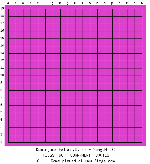Last move : 0-1 2023 October 7 13:7:51 [Event "FICGS__GO__TOURNAMENT__000115"] [Site "FICGS"] [Date "2023.09.07"] [Round "1"] [Black "Dominguez Falcon,Carlos"] [White "Yang,Marco"] [Result "0-1"] 0-1 This go game has been lost on time (started : 2023.09.07 2:58:40) Follow this game move after move (download)Capture what you cut off. (Anonymous) Fear is the path to the dark side. Fear leads to anger; anger leads to hate; hate leads to suffering. I sense much fear in you. (Master Yoda in Star Wars ep.1)
