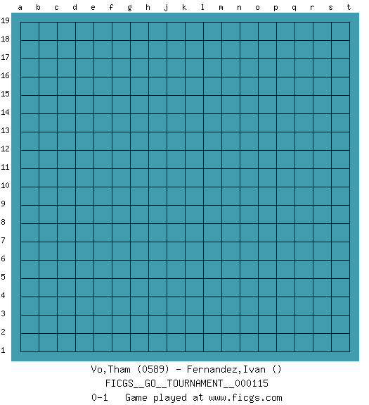 Last move : 0-1 2023 October 7 13:7:51 [Event "FICGS__GO__TOURNAMENT__000115"] [Site "FICGS"] [Date "2023.09.07"] [Round "1"] [Black "Vo,Tham"] [White "Fernandez,Ivan"] [Result "0-1"] [Rating 1 "0589"] 0-1 This go game has been lost on time (started : 2023.09.07 2:58:40) Follow this game move after move (download)Answer the keima with a kosumi. (Anonymous) When you have everything, sometimes it feels like nothing. (Horatio Caine, C.S.I. Miami)