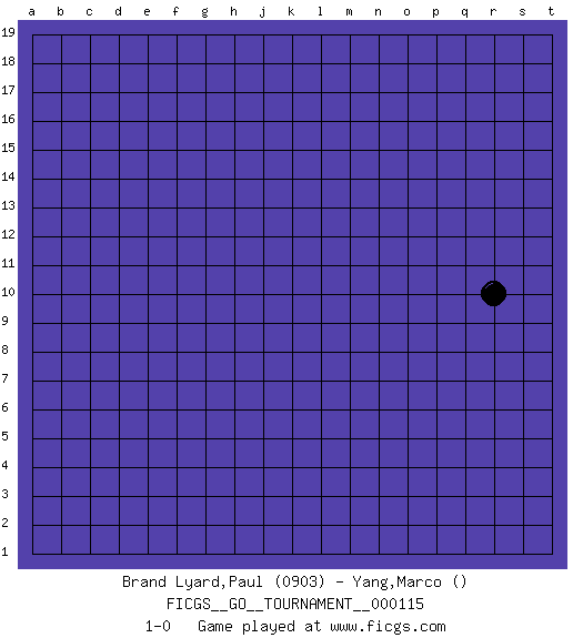 Last move : 1-0 2023 October 8 2:6:26 [Event "FICGS__GO__TOURNAMENT__000115"] [Site "FICGS"] [Date "2023.09.07"] [Round "1"] [Black "Brand Lyard,Paul"] [White "Yang,Marco"] [Result "1-0"] [Rating 1 "0903"] 1.r10 1-0 This go game has been lost on time (started : 2023.09.07 2:58:40) Follow this game move after move (download)Always remember, keep the balance. [between territory and influence] (Figaro) There will be no order, only chaos. (Sol Robeson in Pi by Darren Aronofsky)