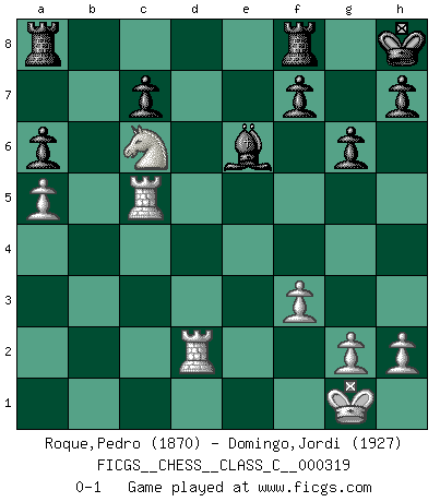Last move : 0-1 2024 July 16 8:9:44 [Event "FICGS__CHESS__CLASS_C__000319"] [Site "FICGS"] [Date "2024.01.21"] [Round "1"] [White "Roque,Pedro"] [Black "Domingo,Jordi"] [Result "0-1"] [WhiteElo "1870"] [BlackElo "1927"] 1.d4 d5 2.c4 dxc4 3.e4 e5 4.Nf3 exd4 5.Bxc4 Nc6 6.O-O Be6 7.Bb5 Bc5 8.b4 Bb6 9.a4 a6 10.Bxc6+ bxc6 11.Bb2 Nf6 12.a5 Ba7 13.Bxd4 Nxe4 14.Bxa7 Qxd1 15.Rxd1 Rxa7 16.Nd4 c5 17.Nc6 Ra8 18.f3 Nf6 19.bxc5 Nd7 20.Nc3 Nxc5 21.Rac1 O-O 22.Nd5 Bxd5 23.Ne7+ Kh8 24.Rxc5 Ba2 25.Rd2 Be6 26.Nc6 g6 0-1 This chess game has been lost on time (started : 2024.01.21 0:34:26) Follow this game move after move (download)If your opponent offers you a draw, try to work out why he thinks he's worse off. (Nigel Short) Als er Schachweltmeister wurde ließ er praktisch alle stärksten Sovietspieler für sich arbeiten. Wenn ein auch nur mittelmässiger Meister ein Spezialist für eine bestimmte Eröffnung war, wurde er von Karpov gerufen. Das wurde alles geheim gehalten. (Mikhail Moiseyevich Botvinik) Debes de llevar a tu oponente hacia un profundo y obscuro bosque donde 2+2=5, y el camino que conduce a la salida es suficientemente ancho para solamente uno. (Mikhail Tal) Nous sommes les pions de la mystérieuse partie d'Echecs jouée par Dieu. Il nous déplace, nous arrête, nous pousse encore, puis nous lance un à un dans la boîte du Néant. Epitaphe sur la tombe de David Janowsky (1868-1927). But they are useless. They can only give you answers. (Pablo Picasso, about computers)