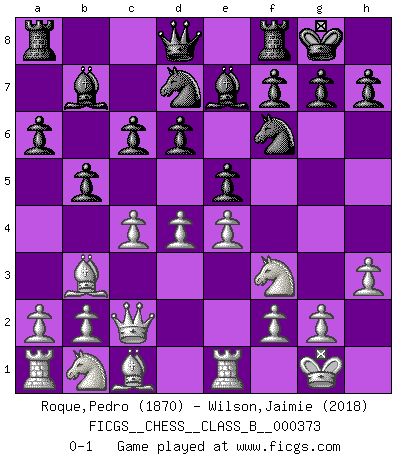 Last move : 0-1 2024 July 20 2:47:12 [Event "FICGS__CHESS__CLASS_B__000373"] [Site "FICGS"] [Date "2024.02.15"] [Round "1"] [White "Roque,Pedro"] [Black "Wilson,Jaimie"] [Result "0-1"] [WhiteElo "1870"] [BlackElo "2018"] 1.e4 e5 2.Nf3 Nc6 3.Bb5 a6 4.Ba4 Nf6 5.O-O Be7 6.Re1 b5 7.Bb3 d6 8.c3 O-O 9.h3 Nb8 10.d4 Nbd7 11.c4 c6 12.Qc2 Bb7 0-1 This chess game has been lost on time (started : 2024.02.15 12:11:38) Follow this game move after move (download)Chess is played with the mind and not with the hands ! (Renaud and Kahn) Ich verstehe Aljechins Kombinationen ganz gut; aber woher er diese Angriffschancen bekommt und wie er die Eröffnung behandelt das ist für mich ein Buch mit sieben Siegeln. (Rudolf Spielmann) El jugador blanco perdió porque fallo en recordar la coreccta continuación y tuvo que pensar por sí mismo las movidas. (Siegbert Tarrasch) Il n'y a pas eu de défaite parce que je ne crois pas que cet ordinateur ait jamais existé. IBM a triché en refusant d'imprimer les modes de recherche de la machine. C'est évident, pendant le match, des coups décisifs ont été joués par des êtres humains. Aujourd'hui, les meilleurs spécialistes en informatique ne peuvent toujours pas expliquer comment Deep-Blue a pu jouer contre la logique des ordinateurs. IBM a gagné une guerre de communication, mais ils sont incapables de prouver que l'ordinateur a gagné tout seul. (Garry Kasparov) Games, world of games... There's always an opponent, and there's always a victim. (Revolver, movie)