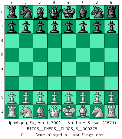 Last move : 0-1 2024 October 19 11:45:13 [Event "FICGS__CHESS__CLASS_B__000378"] [Site "FICGS"] [Date "2024.09.08"] [Round "1"] [White "Upadhyay,Rajesh"] [Black "Vollmer,Steve"] [Result "0-1"] [WhiteElo "1900"] [BlackElo "1874"] 0-1 This chess game has been lost on time (started : 2024.09.08 22:59:28) Follow this game move after move (download)Winning isn't everything... but losing is nothing. (Mednis) Im Fernschach kannst du während dem Spiel rauchen. (John Christen Knudsen) La única cosa que los jugadores de Ajedrez tienen en común, es el Ajedrez. (Lodewijk Prins) Mais l'homme est une créature légère et illogique : semblable au joueur d'échecs, il n'aime que le processus du but à atteindre, non le but lui-même. (Dostoïevsky) There are more things in heaven and earth than practically anywhere else. (Unknown)