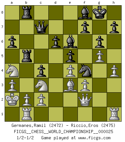 FICGS__CHESS__WORLD_CHAMPIONSHIP__000025 (type : rated knockout, time : 30 days, increment : 1 day / move)