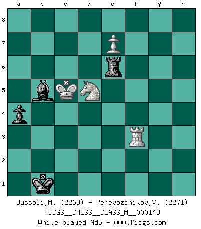 Last move : 1/2-1/2 2025 June 17 11:15:32 [Event "FICGS__CHESS__CLASS_M__000148"] [Site "FICGS"] [Date "2024.12.24"] [Round "1"] [White "Bussoli,Marco"] [Black "Perevozchikov,Vjacheslav"] [Result "1/2-1/2"] [WhiteElo "2269"] [BlackElo "2271"] 1.d4 e6 2.e4 d5 3.Nc3 Bb4 4.e5 c5 5.a3 Bxc3+ 6.bxc3 Ne7 7.Qg4 cxd4 8.Qxg7 Rg8 9.Qxh7 Qc7 10.Ne2 dxc3 11.f4 Nbc6 12.Nxc3 a6 13.Qd3 Bd7 14.Rb1 Na5 15.h4 O-O-O 16.Rh3 Nf5 17.h5 Qc5 18.Qe2 Ng3 19.Qf2 Qxf2+ 20.Kxf2 Nxf1 21.Ne2 Bb5 22.Nd4 Bc4 23.h6 Rg6 24.f5 Rg4 25.fxe6 fxe6 26.Nxe6 Rh8 27.Ng5 d4 28.Kf3 Rg3+ 29.Rxg3 Bd5+ 30.Kf2 Nxg3 31.Kxg3 Rxh6 32.Bf4 Rc6 33.Rh1 Rxc2 34.Rh8+ Kd7 35.e6+ Ke7 36.Rh7+ Kf6 37.Rh6+ Ke7 38.Kg4 Nc4 39.Kf5 Ne3+ 40.Kg6 Bc4 41.Rh7+ Ke8 42.Rxb7 Rxg2 43.Rb8+ Ke7 44.Rb7+ Ke8 45.Bxe3 dxe3 46.Kf6 Rf2+ 47.Ke5 Bb5 48.Rb8+ Ke7 49.Rb7+ Ke8 50.Nh7 Bc6 51.Rg7 Rd2 52.e7 Kd7 53.Nf6+ Kc8 54.Rg3 e2 55.Re3 Kc7 56.Kf5 a5 57.Ke6 Kb6 58.Nh5 Ra2 59.Nf6 Kc5 60.Re5+ Kd4 61.Nh5 Be8 62.Nf4 Rxa3 63.Nxe2+ Kc4 64.Nf4 a4 65.Re4+ Kb3 66.Nd5 Ra1 67.Re3+ Kb2 68.Nf6 Bg6 69.Ng4 Rh1 70.Ne5 Be8 71.Rf3 Rh6+ 72.Kd5 Rh7 73.Ke6 Rh6+ 74.Kd5 Bb5 75.Nd3+ Kc2 76.Nb4+ Kb1 77.Kc5 Re6 78.Nd5 Kb2 79.Rf6 Rxf6 80.Nxf6 1/2-1/2 Follow this game move after move (download)When you play Bobby, it is not a question if you win or lose. It is a question if you survive. (Boris Spassky) Es gibt zwei Arten von Opfern: Korrekte und meine. (Mikhail Nekhemyevich Tal) Cuando estes solo, cuando te sientas un extraño en el mundo, juega al Ajedrez. Esto levantará tu espiritu y será tu consejero de guerra. (Aristóteles) Il (Jacob Murray) ne joue pas pour le bon coup, mais pour le meilleur. (Eloi Relange) If you don't practice you don't deserve to win. (Andre Agassi)