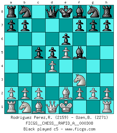 Last move : 1/2-1/2 2025 June 10 11:33:39 [Event "FICGS__CHESS__RAPID_A__000308"] [Site "FICGS"] [Date "2025.03.29"] [Round "1"] [White "Rodriguez Perez,Rene"] [Black "Ozen,Bahadir"] [Result "1/2-1/2"] [WhiteElo "2159"] [BlackElo "2271"] 1.e4 c6 2.d4 d5 3.e5 Bf5 4.Nf3 e6 5.Be2 c5 6.Be3 cxd4 7.Nxd4 Ne7 8.Nd2 Nbc6 9.N2f3 Be4 10.O-O Rc8 11.c3 a6 12.Qb3 Qd7 13.Nd2 Nf5 14.Nxe4 Nxe3 15.fxe3 dxe4 16.Rad1 Nxe5 17.Rf4 Bd6 18.Rxe4 Qe7 19.Qa4+ Kf8 20.Nf3 Nc6 1/2-1/2 Follow this game move after move (download)Bobby just drops the pieces and they fall on the right squares. (Miguel Najdorf) Je mehr wir mit Computern analysieren, desto mehr glauben wir an Verteidigung. (Vladimir Kramnik) El Rey es una pieza de pelea. ¡Usenlo!. (Wilhelm Steinitz) Je ne suis pas le dernier à jouer lâchement des coups douteux pendant le zeïtnot de l'adversaire pour l'achever: en effet les coups qui font le plus peur sont ceux que l'on ne comprend pas. Je me fais souvent peur quand je joue. (Un professeur anonyme) Live, lose, and learn, by observing your opponent how to win. (Amber Steenbock)