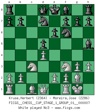 Last move : 1/2-1/2 2025 November 25 23:59:24 [Event "FICGS__CHESS__CUP_STAGE_1_GROUP_01__000007"] [Site "FICGS"] [Date "2025.05.16"] [Round "1"] [White "Kruse,Herbert"] [Black "Moreira,Jose"] [Result "1/2-1/2"] [WhiteElo "2364"] [BlackElo "2286"] 1.g3 d5 2.Nf3 Nf6 3.Bg2 c6 4.O-O Bg4 5.h3 Bh5 6.c4 e6 7.d4 Nbd7 8.cxd5 cxd5 9.Nc3 Bxf3 10.Bxf3 Be7 11.Qd3 O-O 12.Bd2 Rc8 13.Rfb1 h6 14.Bg2 Re8 15.a3 Nb6 16.b3 Rc6 17.e3 Nc8 18.Be1 h5 19.Qd1 Nd6 20.Ne2 Qb6 21.a4 Rec8 22.a5 Qd8 23.Qd3 g6 24.Rc1 Rxc1 25.Nxc1 Rc7 26.a6 b6 27.Ne2 g5 28.Nc1 Qc8 29.Ne2 Rc6 30.Nc3 Kg7 31.Kf1 Rc7 32.Bd2 Qa8 33.Rc1 Qc8 34.Ra1 Qa8 35.Rc1 Qe8 36.Kg1 b5 37.e4 dxe4 38.Qe3 Nd5 39.Qe1 Nxc3 40.Bxc3 Bf6 41.Bb4 Rc6 42.Qd1 Rxa6 43.Qxh5 Qh8 44.Qg4 e3 45.fxe3 Nf5 46.Qf3 Ra2 47.d5 Qb8 48.dxe6 fxe6 49.g4 Ng3 50.Re1 a5 51.Bc5 Qc7 52.Bd4 Bxd4 53.exd4 b4 54.Re3 Qc1+ 55.Bf1 Qxf1+ 56.Qxf1 Nxf1 57.Kxf1 Kf6 58.Ke1 a4 59.bxa4 Rxa4 60.Re5 Ra1+ 61.Ke2 Ra2+ 62.Kd3 Ra3+ 63.Kc4 Rxh3 64.Kxb4 Rf3 65.Kc4 Rf4 66.Rb5 Rxg4 67.Kd3 Rf4 68.Ke3 Rf1 69.Rb8 Kg7 70.Ra8 Rf6 71.Ra1 Kg6 72.Rd1 Rf5 73.Rg1 Rf4 74.Rc1 Kf6 75.Rb1 Rf5 76.Rg1 Kg6 77.Rg2 Rf1 78.Rg3 Kf5 79.Rh3 g4 80.Rh5+ Kg6 81.Rh8 Rf6 82.Ke4 Kg5 83.Rg8+ Rg6 84.Rh8 Kf6 85.Rf8+ Ke7 86.Rf1 Kd6 87.Rg1 g3 88.Rg2 Rg8 89.Kf4 Kd5 90.Ke3 Rg7 91.Kd3 Ra7 92.Ke3 Ra3+ 93.Kf4 Kxd4 94.Re2 Kd5 95.Rd2+ Kc5 96.Ke5 Kc4 97.Kf4 Rd3 98.Ra2 Kd5 99.Re2 Kd6 100.Ke4 Rc3 101.Ra2 Rc8 102.Rd2+ Ke7 103.Kf3 Rg8 104.Kg2 e5 105.Ra2 Ke6 106.Ra4 Kf5 107.Ra3 Kf4 108.Rf3+ Ke4 109.Ra3 Rg6 110.Ra4+ Kd3 111.Ra3+ Kc4 112.Ra4+ Kd3 113.Ra3+ Kc4 114.Ra4+ Kd5 1/2-1/2 Follow this game move after move (download)Alekhine is a poet who creates a work of art out of something that would hardly inspire another man to send home a picture post card. (Max Euwe) Bobby Fischer ist kein Vorbild für die heutige Jugend. (Viktor Kortschnoi) El Ajedrez lo es todo: arte, ciencia y deporte. (Anatoly Karpov) Dieu déplace le joueur, et celui-ci la pièce. Quel Dieu derrière Dieu commence donc la trame ? Arturo Perez-Reverte (prix de littérature policière 1993). Kids, you tried your best and you failed miserably. The lesson is, never try. (Simpsons)