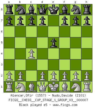 Last move : 0-1 2025 June 26 13:36:13 [Event "FICGS__CHESS__CUP_STAGE_1_GROUP_03__000007"] [Site "FICGS"] [Date "2025.05.16"] [Round "1"] [White "Alencar,Ofir"] [Black "Nudo,Davide"] [Result "0-1"] [WhiteElo "1557"] [BlackElo "2101"] 1.c4 e5 2.Nc3 Nf6 3.g3 Bb4 4.a3 Bxc3 5.dxc3 d6 6.c5 h6 7.Bh3 Bxh3 8.Nxh3 Qd7 9.Ng1 Qc6 10.Nf3 dxc5 11.Nxe5 Qxh1+ 12.Kd2 Qd5+ 13.Nd3 c4 0-1 Follow this game move after move (download)One of these modest little moves may be more embarrassing to your opponent than the biggest threat. (Siegbert Tarrasch) Ein guter Spieler hat immer Glück. (José Raúl Capablanca) El Ajedrez es la vida. (Bobby Fischer) Je crois qu'il existe des manières très spécifiques de jouer efficacement contre une machine. Evidemment, nous n'avons aucune chance en technique pure, parce que l'ordinateur calcule de manière parfaite. Mais lorsque nous faisons appel à notre cerveau, en utilisant l'intuition et la compréhension, alors nous restons beaucoup plus forts. (Anatoli Karpov) History is the quarrels of popes and kings, with wars or pestilences in every page; the men all so good for nothing, and hardly any women at all. (Jane Austen)
