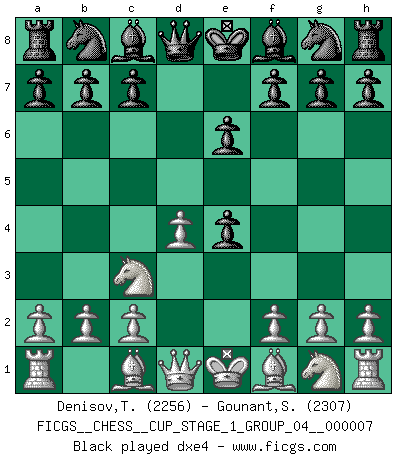 Last move : 1/2-1/2 2025 August 31 15:6:4 [Event "FICGS__CHESS__CUP_STAGE_1_GROUP_04__000007"] [Site "FICGS"] [Date "2025.05.16"] [Round "1"] [White "Denisov,Timofey"] [Black "Gounant,Stanislas"] [Result "1/2-1/2"] [WhiteElo "2256"] [BlackElo "2307"] 1.e4 e6 2.d4 d5 3.Nc3 dxe4 4.Nxe4 Nd7 5.Nf3 Ngf6 6.Nxf6+ Nxf6 7.c3 c5 8.Ne5 a6 9.Be3 Qc7 10.Qa4+ Nd7 11.Bb5 cxd4 12.Bxd7+ Bxd7 13.Qxd4 Bc8 14.Qe4 f6 15.Nc4 e5 16.Nb6 Rb8 17.Qa4+ Qc6 18.Qxc6+ bxc6 19.Nxc8 Rxc8 20.O-O-O g5 21.Kc2 h5 22.h3 Ke7 23.Rd2 Rg8 24.Rhd1 Ke6 25.Rd7 f5 26.Ra7 f4 27.Bb6 Be7 28.b4 Ra8 29.Rc7 Rgc8 30.Rcd7 g4 31.h4 Re8 32.a4 Rab8 33.a5 Rbc8 34.Ra7 Ra8 35.Rc7 Rac8 36.Ra7 Kf5 37.Rxa6 c5 38.b5 Bxh4 39.Rd7 Bxf2 40.Bc7 h4 41.Rf7+ Ke4 42.Rg6 h3 43.gxh3 gxh3 44.Rh6 Rh8 45.Rfh7 Rxh7 46.Rxh7 c4 47.b6 Rg8 48.Rxh3 Rg2 49.Kb1 f3 50.a6 Bxb6 51.Bxb6 Rg6 52.Bf2 Rxa6 53.Rh1 Rg6 54.Re1+ Kf4 55.Be3+ Kf5 56.Kb2 Rg2+ 57.Ka3 Ke4 58.Bd4 1/2-1/2 Follow this game move after move (download)Capture of the adverse King is the ultimate but not the first object of the game. (William Steinitz) Die Auseinandersetzung mit Karpow war politisch geprägt. Er stand für das kommunistische System, wurde von dessen Repräsentanten gehätschelt. Ich war der Oppositionelle. Jeder Schachweltmeister spiegelt auch die gesellschaftlichen Verhältnisse wider. Kramnik steht für die Börsen-Generation des Neuen Markts, ideologiefrei, zahlenfixiert. (Garry Kasparov) La vida es como un juego de Ajedrez, cambiando con cada movimiento. (Proverbio Chino) Un journaliste : 'Vous préférez avoir une dame de plus sur l'échiquier ou au lit ?' Boris Spassky : 'Ca dépend de la position.' God is an atheist. (Unknown)