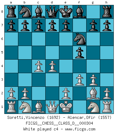 Last move : 1-0 2025 September 10 9:24:13 [Event "FICGS__CHESS__CLASS_D__000304"] [Site "FICGS"] [Date "2025.06.16"] [Round "1"] [White "Soretti,Vincenzo"] [Black "Alencar,Ofir"] [Result "1-0"] [WhiteElo "1692"] [BlackElo "1557"] 1.d4 f5 2.g3 Nf6 3.Bg2 Ne4 4.f3 Nf6 5.c4 b6 6.Nc3 Bb7 7.Nh3 e6 8.O-O c5 9.Be3 cxd4 10.Bxd4 Bc5 11.e3 1-0 This chess game has been lost on time (started : 2025.06.16 12:6:11) Follow this game move after move (download)I'm not a materialistic person, in that, I don't suffer the lack or loss of money. The absence of worldly goods I don't look back on. For Chess is a way I can be as materialistic as I want without having to sell my soul. (Jamie Walter Adams) Schach ist mein Leben, meine Leidenschaft, was ich gelernt habe und seit meinem 14. Lebensjahr profimässig praktiziere. Darauf zu verzichten, würde mir sehr schwer fallen. (Viktor Kortschnoi) El Ajedrez es una hermosa aventura. (Bent Larsen) Les échecs c'est le défi de l'alpiniste, toujours plus haut, prêt à tout pour monter à l'assaut du Roi ennemi. Les échecs, c'est de la musique en mouvement, un ballet majestueux pour les yeux. C'est de la poésie composée par les fantômes du passé qui au même titre que Rimbaud ou Verlaine méritent notre admiration. Les échecs, c'est de la peinture ou le moindre mouvement modifie le tableau pour en faire un Picasso ou un Van Gogh. Les échecs, c'est tout et rien, c'est la vie et la mort. Jjulie33 sur le forum de France-Echecs. Vladimir Ras-Putin is still alive... He is also a good actor, I saw him in the Lord of the Rings. (Rodolfo d'Ettorre)