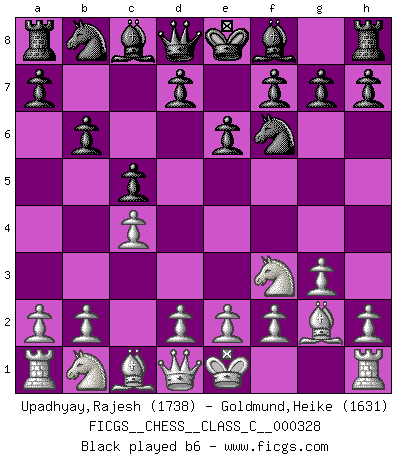 Last move : a4 2026 January 1 4:35:57 White clock - 97 days 15:24:29 Black clock - 90 days 17:49:09 (58 days 19:43:10) [Event "FICGS__CHESS__CLASS_C__000328"] [Site "FICGS"] [Date "2025.06.16"] [Round "1"] [White "Upadhyay,Rajesh"] [Black "Goldmund,Heike"] [Result "*"] [WhiteElo "1738"] [BlackElo "1631"] 1.c4 Nf6 2.Nf3 e6 3.g3 c5 4.Bg2 b6 5.O-O Bb7 6.b3 Be7 7.Bb2 d6 8.d3 O-O 9.Nbd2 Nbd7 10.a3 Qc7 11.b4 Rac8 12.Qb3 a6 13.Rac1 h6 14.Rfd1 d5 15.bxc5 Nxc5 16.Qa2 Na4 17.Be5 Qc6 18.Qa1 dxc4 19.Nxc4 Nc5 20.Ne1 Qd7 21.Nxb6 Nb3 22.Nxd7 Nxa1 23.Bxf6 Bxf6 24.Bxb7 Rxc1 25.Rxc1 Rb8 26.Nxf6+ gxf6 27.Rc8+ Rxc8 28.Bxc8 Nb3 29.Bxa6 Nc5 30.Bb5 Nb3 31.Nc2 f5 32.d4 Kg7 33.Kf1 f6 34.Ke1 Kf7 35.Bc4 Na5 36.Ba2 Ke7 37.d5 exd5 38.Bxd5 Kd6 39.Ne3 Ke5 40.f4+ Kd6 41.Kd2 h5 42.Kc3 Kc5 43.a4 * Follow this game move after move (download)Personally, I rather look forward to a computer program winning the world Chess Championship. Humanity needs a lesson in humility. (Richard Dawkings) Das Schachspiel hat wie die Liebe, die Musik, die Fähigkeit, den Menschen glücklich zu machen. Ich habe ein leises Gefühl des Bedauerns für jeden, der das Schachspiel nicht kennt, so wie ich jeden bedaure, der die Liebe nicht kennt. (Siegbert Tarrasch) Coloca el contenido del tablero de Ajedrez en un sombrero, agita las piezas vigorosamente, derrámalas en el tablero desde una altura de medio metro y así obtienes el estilo de Wilhelm Steinitz. (H. E. Bird) Même un GMI sait rarement calculer sur plus de cinq coups une attaque à sacrifices. (Rudolf Spielmann) There is a great deal of difference between an eager man who wants to read a book and a tired man who wants a book to read. (G.K. Chesterton)