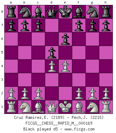 Last move : 1/2-1/2 2025 December 4 4:10:20 [Event "FICGS__CHESS__RAPID_M__000169"] [Site "FICGS"] [Date "2025.07.01"] [Round "1"] [White "Cruz Ramirez,Eliecer"] [Black "Pech,Jaroslav"] [Result "1/2-1/2"] [WhiteElo "2189"] [BlackElo "2215"] 1.e4 e6 2.d4 d5 3.Nc3 Nf6 4.Bg5 dxe4 5.Nxe4 Be7 6.Nxf6+ Bxf6 7.Bxf6 Qxf6 8.Nf3 O-O 9.Qd3 Nd7 10.Qe4 Qg6 11.Qxg6 hxg6 12.O-O-O Rd8 13.Bc4 Nf6 14.Ne5 Nd5 15.h4 Bd7 16.Bxd5 exd5 17.Rhe1 Be8 18.Nd3 Bd7 19.Ne5 Be8 20.Re3 f6 21.Nd3 Bf7 22.Rde1 Kf8 23.Nc5 b6 24.Na6 Rac8 25.Kd2 Be8 26.Rc3 c6 27.f3 Kf7 28.Rce3 Kf8 29.Rc3 Bd7 30.a4 Kf7 31.Rb3 Rh8 32.g3 g5 33.hxg5 Rh2+ 34.Re2 Rxe2+ 35.Kxe2 c5 36.dxc5 Bxa4 37.Rb4 Bxc2 38.cxb6 axb6 39.gxf6 Kxf6 40.Rxb6+ Ke5 41.Nb4 Kd4 42.Ra6 g5 43.Kd2 Bb3 44.Rf6 Ba4 45.Ra6 1/2-1/2 Follow this game move after move (download)To avoid losing a piece, many a person has lost the game. (Savielly Tartakover) Das Schach hält seine Meister in eigenen Banden, Fesseln; auf vielerlei Weise formt es ihren Geist, so dass die innere Freiheit selbst des Stärksten beeinflusst wird. (Albert Einstein) a manera como él juega al Ajedrez, demuestra la completa naturaleza de un hombre. (Stanley Ellin) Des combinaisons [dans le jeu d'échecs] pareilles à des mélodies. Je crois entendre pour ainsi dire la musique des coups... (Vladimir Nabokov) It's not enough to succeed. Others must fail. (Gore Vidal)