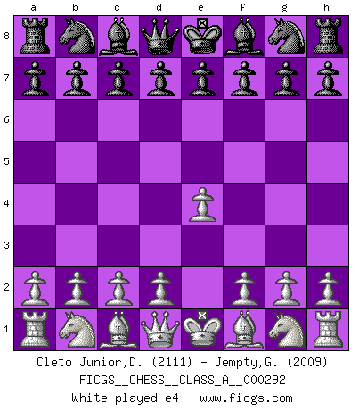 Last move : 0-1 2025 August 5 13:37:3 [Event "FICGS__CHESS__CLASS_A__000292"] [Site "FICGS"] [Date "2025.07.24"] [Round "1"] [White "Cleto Junior,Dirceu"] [Black "Jempty,George"] [Result "0-1"] [WhiteElo "2111"] [BlackElo "2009"] 1.e4 e5 2.Nf3 Nc6 3.Bb5 a6 4.Ba4 d6 5.c3 f5 6.exf5 Bxf5 7.O-O Bd3 8.Re1 Be7 9.Re3 e4 10.Ne1 Bg5 11.Nxd3 Bxe3 12.Nb4 Bxf2+ 13.Kxf2 Qh4+ 14.Kg1 Nh6 15.g3 Qh3 16.Qf1 Qxf1+ 17.Kxf1 O-O 18.Kg1 Ne5 19.d4 Nf3+ 20.Kg2 Ng4 21.Bf4 g5 22.h3 gxf4 23.hxg4 c6 24.Nc2 Kh8 25.c4 b5 26.Bb3 b4 27.Ba4 Rac8 28.gxf4 Rxf4 29.Kg3 Rcf8 0-1 Comment by player 2 : George Jempty : If White wants to fight for a win, after 10...Bg5, he must play 11.Rh3 Follow this game move after move (download)Do you realize Fischer almost never has any bad pieces? He exchanges them, and the bad pieces remain with his opponents. (Yuri Balashov) Ich erzeugte keinen Neid, da mich die Schachspieler als Musiker und die Musiker als Schachspieler betrachteten. (Mark Taimanov) El Ajedrez hace al hombre ser mas sabio y ver mas claro. (Vladimir Putin) Lorsque vous vous retrouvez devant une position atroce, ne tendez pas un ultime piège dérisoire avec l'intention d'abandonner si l'adversaire le déjoue ! Faites-vous plutôt un devoir de résister comme si votre vie en dépendait. Jouez le coup qui vous déplairait au centuple si vous étiez dans la peau de votre tortionnaire ! Luck never made a man wise. (Seneca, Letters to Lucilius)