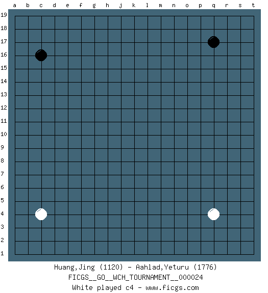 Last move : 0-1 2025 December 22 6:36:9 [Event "FICGS__GO__WCH_TOURNAMENT__000024"] [Site "FICGS"] [Date "2025.08.07"] [Round "1"] [Black "Huang,Jing"] [White "Aahlad,Yeturu"] [Result "0-1"] [Rating 1 "1120"] [Rating 2 "1776"] 1.q17 q4 2.c16 c4 3.r14 e17 4.d15 q16 5.r16 p17 6.r17 e4 7.c10 r6 8.g17 j17 9.f16 m17 10.p16 o16 11.q15 k3 12.p2 q2 13.q3 p3 14.r3 r2 15.p4 o3 16.r4 q5 17.o2 s2 18.n3 o4 19.n5 n4 20.m4 o5 21.o6 p5 22.m3 j4 23.m5 k7 24.m8 c8 25.e10 c17 26.b17 b18 27.b16 e8 28.g10 g8 29.r8 p7 30.q10 h16 31.h18 j18 32.f18 l6 33.n7 l9 34.l8 k8 35.k9 l10 36.k10 k11 37.j11 n10 38.l11 n9 39.p6 k12 40.j12 q7 41.o8 r7 42.m6 k13 43.j13 h9 44.j10 p9 45.l2 l7 46.k2 j2 47.n1 p1 48.m2 g16 49.e16 b10 50.b11 b9 51.c12 k14 52.s8 q12 53.r12 o15 54.p12 q9 55.r10 p11 0-1 This go game has been lost on time (started : 2025.08.07 0:12:39) Follow this game move after move (download)Go is essentially a form of harmony. Go in the 21st century will have to be go of the 'harmony of the six points - the four quarters, the above and the below.' As in life we will need to view the whole rather than the part. Japanese go has focused too heavily on the local (joseki) rather than the whole for 300 years. The reason the Chinese and Koreans are overtaking the Japanese is that they are closer to achieve this whole-board view. (Go Seigen, 9p, 1994) I just play for fun. (Anna Kournikova)
