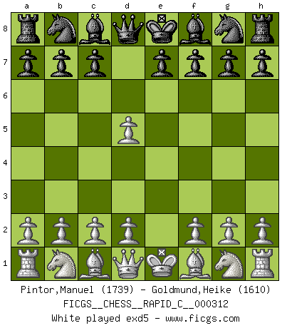 Last move : 1-0 2025 September 27 22:13:52 [Event "FICGS__CHESS__RAPID_C__000312"] [Site "FICGS"] [Date "2025.08.15"] [Round "1"] [White "Pintor,Manuel"] [Black "Goldmund,Heike"] [Result "1-0"] [WhiteElo "1739"] [BlackElo "1610"] 1.e4 d5 2.exd5 Qxd5 3.Nf3 Nf6 4.Nc3 Qa5 5.Bc4 Bg4 6.O-O c6 7.d4 e6 8.Bf4 Qd8 9.a4 Bd6 10.Bg5 1-0 This chess game has been lost on time (started : 2025.08.15 9:30:58) Follow this game move after move (download)It's always better to sacrifice your opponent's men. (Savielly Tartakover) Der Vorposten provoziert a) eine Basis für neue Angriffe und b) eine Schwächung der gegnerischen Widerstandskraft in der fraglichen Linie. (Aaron Nimzowitsch) Todos los jugadores de Ajedrez deberían tener un pasatiempo. (Savielly Tartakower) Je ne crois pas en la psychologie, je crois aux bons coups. (Robert Fischer) If you don't practice you don't deserve to win. (Andre Agassi)