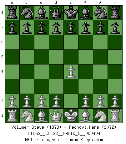Last move : 1-0 2025 October 10 16:2:51 [Event "FICGS__CHESS__RAPID_B__000404"] [Site "FICGS"] [Date "2025.08.21"] [Round "1"] [White "Vollmer,Steve"] [Black "Pechova,Hana"] [Result "1-0"] [WhiteElo "1873"] [BlackElo "2072"] 1.e4 e5 2.Nf3 Nc6 3.Bb5 Nf6 4.O-O 1-0 This chess game has been lost on time (started : 2025.08.21 21:24:14) Follow this game move after move (download)Chess is a forcing house where the fruits of character can ripen more fully than in life. (Edward Morgan Foster) Ich könnte leicht behaupten: Ja,ja, Leonid Breschnew wollte nicht, daß ich Weltmeister werde. In der Tat war die Sache komplizierter. (Viktor Kortschnoi) Debemos de asegurarnos de que el Ajedrez no se convierta en un lenguaje muerto, muy interesante, pero tan solo para un grupo muy pequeño. (Sytze Faber) Assurément je connaissais par expérience le mystérieux attrait de ce jeu royal, le seul entre tous les jeux inventés par les hommes qui échappe souverainement à la tyrannie du hasard, le seul où l'on ne doive sa victoire qu'à son intelligence ou plutôt à une certaine forme d'intelligence. Mais n'est-ce pas déjà le limiter injurieusement que d'appeler les échecs un jeu ? N'est-ce pas une science, un art ou quelque chose qui, comme le cercueil de Mahomet entre ciel et terre, est suspendu entre l'un et l'autre, et qui réunit un nombre incroyable de contraires ? [...] C'est une pensée qui ne mène à rien, une mathématique qui n'établit rien, un art qui ne laisse pas d'uvre, une architecture sans matière; et il l'a prouvé néanmoins qu'il était plus durable, à sa manière, que les livres ou que tout autre monument, ce jeu unique qui appartient à tous les peuples et à tous les temps, et dont personne ne sait quel dieu en fit don à la terre pour tuer l'ennui, pour aiguiser l'esprit et stimuler l'âme. Où commence-t-il, où finit-il ? (Stefan Zweig) The Internet is the world's largest library. It's just that all the books are on the floor. (John Allen Paulos)