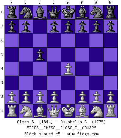 Last move : 0-1 2025 December 14 8:26:47 [Event "FICGS__CHESS__CLASS_C__000329"] [Site "FICGS"] [Date "2025.08.23"] [Round "1"] [White "Olsen,Sverre Eugen"] [Black "Autobello,Giovanni"] [Result "0-1"] [WhiteElo "1844"] [BlackElo "1775"] 1.e4 c5 2.Nf3 d6 3.d4 cxd4 4.Nxd4 Nf6 5.Nc3 a6 6.Be2 Nc6 7.O-O e5 8.Nb3 Be6 9.Bg5 Be7 10.a3 O-O 11.Na4 Nxe4 12.Bxe7 Qxe7 13.Re1 Nf6 14.Nb6 Rab8 15.c4 Nd7 16.Nxd7 Qxd7 17.Bf3 Bxc4 18.Nd2 Be6 19.Ne4 Nd4 20.Qd3 b5 21.b4 Bc4 22.Qd1 Rbc8 0-1 Follow this game move after move (download)It was clear to me that the vulnerable point of the American Grandmaster (Bobby Fischer) was in double-edged, hanging, irrational positions, where he often failed to find a win even in a won position. (Efim Geller) Sehr viele beherrschen heutzutage das große Einmalseins des Schachspiels und kennen sogar dessen Logarithmentafeln auswendig - deshalb sollte man hin und wieder zu beweisen trachten, dass zwei mal zwei auch fünf sein kann. (Mikhail Nekhemyevich Tal) ¿Quién es tu oponente esta tarde? Esta tarde mi oponente son las piezas negras. (Akiba Rubinstein) Aux échecs, les retours au sommet sont rares : les dommages psychologiques consécutifs à une défaite sont trop sévères. (Daily Telegraph) The existence of forgetting has never been proved: We only know that some things don't come to mind when we want them. (Friedrich Nietzsche)