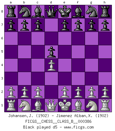 Last move : 0-1 2025 October 27 10:42:26 [Event "FICGS__CHESS__CLASS_B__000386"] [Site "FICGS"] [Date "2025.08.24"] [Round "1"] [White "Johansen,Jorgen"] [Black "Jimenez Alban,Xavier Miguel"] [Result "0-1"] [WhiteElo "1902"] [BlackElo "1902"] 1.d4 d5 2.c4 c6 3.Nf3 Nf6 4.Nc3 e6 0-1 This chess game has been lost on time (started : 2025.08.24 11:52:11) Follow this game move after move (download)Chess is played with the mind and not with the hands ! (Renaud and Kahn) Du kannst im Schach nur gut werden, wenn du das Spiel liebst. (Robert James Fischer) No hay otro maestro que tenga una voluntad terrífica de ganar. Al tablero, el irradía peligro y aún los oponentes mas fuertes tienden a congelarse como liebres cuando olfatean a una pantera. Aún sus debilidades son peligrosas. Con las blancas, su juego de apertura es predecible - te es posible hacer planes en su contra - pero es tan fuerte que tus planes casi nunca funcionan. En el juego medio, su precisión e invención son fabulosas y en finales, tú simplemente no le puedes vencer. (Experto Alemán anónimo) Il n'y a pas eu de défaite parce que je ne crois pas que cet ordinateur ait jamais existé. IBM a triché en refusant d'imprimer les modes de recherche de la machine. C'est évident, pendant le match, des coups décisifs ont été joués par des êtres humains. Aujourd'hui, les meilleurs spécialistes en informatique ne peuvent toujours pas expliquer comment Deep-Blue a pu jouer contre la logique des ordinateurs. IBM a gagné une guerre de communication, mais ils sont incapables de prouver que l'ordinateur a gagné tout seul. (Garry Kasparov) Life is pleasant. Death is peaceful. It's the transition that's troublesome. (Isaac Asimov)