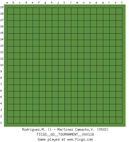Last move : 1-0 2025 December 18 2:40:17 [Event "FICGS__GO__TOURNAMENT__000118"] [Site "FICGS"] [Date "2025.09.09"] [Round "1"] [Black "Rodriguez,Mariano"] [White "Martinez Camacho,Victor Hugo"] [Result "1-0"] [Rating 2 "0502"] 1.d4 h5 2.d16 e6 3.q4 k4 4.q16 o4 5.k16 q5 6.e4 m4 7.c5 f5 8.c6 p5 9.c8 e8 10.c7 e10 11.p3 p4 12.f4 g4 13.g3 h4 14.c9 e9 15.r5 q6 16.r6 q7 17.o3 n4 18.r7 q8 19.h3 j4 20.r8 q9 21.r9 q10 22.n3 l4 23.e7 d7 24.j3 f7 25.k3 g16 26.l3 m3 27.d10 e13 28.r10 e16 29.d5 c12 30.c10 d11 31.e11 e12 32.d15 e14 33.d12 c11 34.r11 q11 35.q12 1-0 This go game has been lost on time (started : 2025.09.09 21:22:24) Follow this game move after move (download)A basic: Don't push too hard. (Jansteen) O divine art of subtlety and secrecy! Through you we learn to be invisible, through you inaudible and hence we can hold the enemy's fate in our hands. (Sun Tzu)
