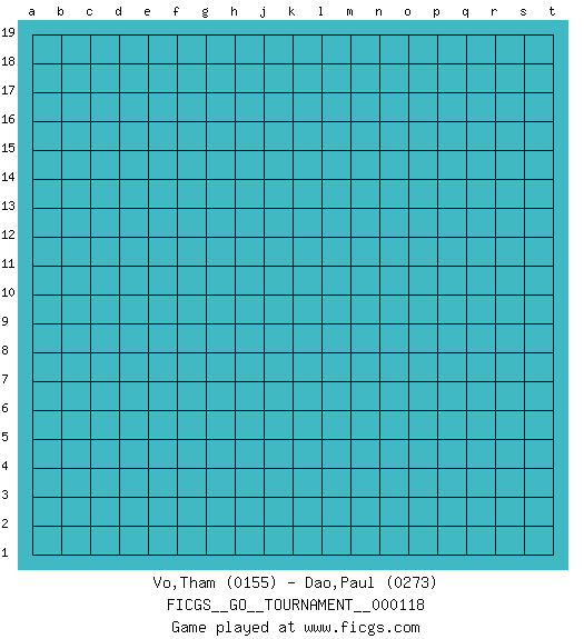 Last move : 0-1 2025 October 10 2:35:22 [Event "FICGS__GO__TOURNAMENT__000118"] [Site "FICGS"] [Date "2025.09.09"] [Round "1"] [Black "Vo,Tham"] [White "Dao,Paul"] [Result "0-1"] [Rating 1 "0155"] [Rating 2 "0273"] 0-1 This go game has been lost on time (started : 2025.09.09 21:22:24) Follow this game move after move (download)Avoid the plate connection. (Anonymous) There are more things in heaven and earth than practically anywhere else. (Unknown)