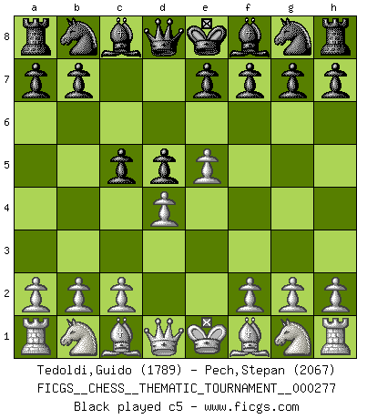Last move : Rc1 2026 January 2 2:5:50 White clock - 46 days 16:48:06 Black clock - 19 days 13:47:18 [Event "FICGS__CHESS__THEMATIC_TOURNAMENT__000277"] [Site "FICGS"] [Date "2025.10.21"] [Round "1"] [White "Tedoldi,Guido"] [Black "Pech,Stepan"] [Result "*"] [WhiteElo "1789"] [BlackElo "2067"] 1.e4 c6 2.d4 d5 3.e5 c5 4.Nf3 Bg4 5.Be2 Nc6 6.c3 e6 7.h3 Bxf3 8.Bxf3 Qb6 9.Be3 Qxb2 10.Nd2 Qxc3 11.Rc1 * Follow this game move after move (download)When the Chess game is over, the Pawn and the King go back to the same box. (Irish saying) Frage: Gibt es etwas was Sie mehr lieben als Autobahnen ohne Tempobegrenzungen? - Antwort: Deutsche Frauen ohne Tempobegrenzungen. (Loek van Wely) Personalmente, yo prefiero mirar hacia el futuro en donde un programa de computadora gane el título mundial de Ajedrez. La humanidad necesita una lección de humildad. (Richard Dawkings) Plusieurs personnes se sont demandées comment Tal faisait pour gagner... En fait, c'est très simple ! Il met ses pièces au centre de l'échiquier et les sacrifie quelque part ! (David Bronstein) Internal peace cannot coexist with external war. (Don Groves)