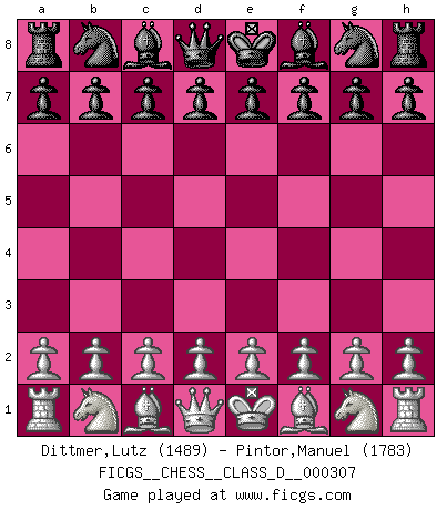 Last move : 0-1 2025 December 7 20:12:38 [Event "FICGS__CHESS__CLASS_D__000307"] [Site "FICGS"] [Date "2025.10.27"] [Round "1"] [White "Dittmer,Lutz"] [Black "Pintor,Manuel"] [Result "0-1"] [WhiteElo "1489"] [BlackElo "1783"] 1.d4 d5 0-1 This chess game has been lost on time (started : 2025.10.27 18:41:4) Follow this game move after move (download)To avoid losing a piece, many a person has lost the game. (Savielly Tartakover) Versuche, dich von der Sklaverei der Eröffnungsvarianten zu befreien. Stattdessen soll man gewisse Typenpositionen erlernen, die man eingehend analysiert. (Aaron Nimzowitsch) Sin errores no puede haber brillantez. (Emanuel Lasker) Il n'y a plus de joueurs du niveau de Jacob Murray dont la seule quête est le beau jeu, le plaisir de voir les pièces construire quelque chose. Sur 10 idées à la minute, 9 seront sans intérêt, la dernière s'avèrera géniale. (Christian Bauer) A generalist learns less and less about more and more until he knows nothing about everything. (Author unknown)