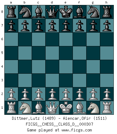 Last move : 0-1 2025 December 7 20:12:38 [Event "FICGS__CHESS__CLASS_D__000307"] [Site "FICGS"] [Date "2025.10.27"] [Round "1"] [White "Dittmer,Lutz"] [Black "Alencar,Ofir"] [Result "0-1"] [WhiteElo "1489"] [BlackElo "1511"] 1.d4 f5 0-1 This chess game has been lost on time (started : 2025.10.27 18:41:4) Follow this game move after move (download)Capture of the adverse King is the ultimate but not the first object of the game. (William Steinitz) Schach ist ein schwarz-weisser Dschungel. (Garry Kasparov) Desconfianza es la característica mas necesaria de un jugador de Ajedrez. (Siegbert Tarrasch) Nous vivons dans un monde échiquéen : chaque jour qui passe est un défi à relever. (Philosophe Sasha) Wisdom begins at the end. (Daniel Webster)