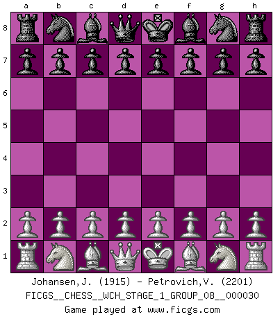 Last move : 0-1 2025 November 29 18:48:28 [Event "FICGS__CHESS__WCH_STAGE_1_GROUP_08__000030"] [Site "FICGS"] [Date "2025.10.30"] [Round "1"] [White "Johansen,Jorgen"] [Black "Petrovich,Valery"] [Result "0-1"] [WhiteElo "1915"] [BlackElo "2201"] 0-1 This chess game has been lost on time (started : 2025.10.30 11:46:4) Follow this game move after move (download)In blitz, the Knight is stronger than the Bishop. (Vlastimil Hort) Ich spiele ehrlich und spiele, um zu gewinnen. Wenn ich verliere nehme ich meine Medizin. (Robert James Fischer) Un Peón pasado es un criminal, quién debe ser mantenido bajo candado y llave. Leves medidas, tales como vigilancia policiaca, no son suficientes. (Aaron Nimzovich) Le moment que je préfère le plus dans une rencontre, c'est celui où je sens que la personnalité de l'adversaire se brise. (Robert Fischer) The only difference between a tax man and a taxidermist is that the taxidermist leaves the skin. (Mark Twain)