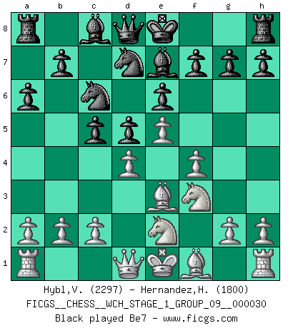 Last move : Rxe6 2026 February 2 23:31:29 White clock - 4 days 19:24:01 Black clock - 27 days 03:59:34 [Event "FICGS__CHESS__WCH_STAGE_1_GROUP_09__000030"] [Site "FICGS"] [Date "2025.10.30"] [Round "1"] [White "Hybl,Vladislav"] [Black "Hernandez,Humberto"] [Result "*"] [WhiteElo "2297"] [BlackElo "1800"] 1.e4 e6 2.d4 d5 3.Nc3 Nf6 4.e5 Nfd7 5.f4 c5 6.Nf3 Nc6 7.Be3 a6 8.Ne2 Be7 9.c3 O-O 10.h4 b5 11.Ng5 h6 12.g4 g6 13.Nf3 b4 14.f5 bxc3 15.bxc3 exf5 16.gxf5 cxd4 17.cxd4 Ndxe5 18.dxe5 Bxf5 19.Bg2 Bb4+ 20.Kf2 Re8 21.Ned4 Nxd4 22.Bxd4 Rb8 23.Bh3 Be4 24.h5 g5 25.Rc1 Ba3 26.Rc6 Rb4 27.Re1 Qb8 28.Bd7 Bb2 29.Bc5 Rc4 30.e6 Rxe6 31.Rxe6 * Follow this game move after move (download)If one piece is badly posted, the whole game is bad. (Tarrasch) Ivan Sokolov treibt mich als Beifahrer an mit go Loeky go - . (Loek van Wely) Un entendimiento a fondo de las continuaciones típicas del mate, hace de las combinaciones de sacrificio mas complicadas conducirlas a ellas no solo sin dificultad, sino casi de una manera natural. (Siegbert Tarrasch) C'est la seule position que je connaisse où les deux camps sont mals. Propos prêtés à V. Anand. 'preceded by its own quotation yields a falsehood' preceded by its own quotation yields a falsehood. (W. V. O. Quine - Set Theory And Its Logic, 1953)