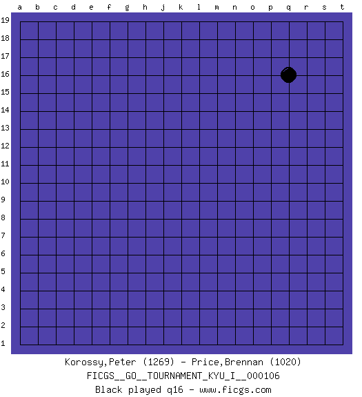 Last move : m15 2026 February 2 3:10:8 Player 1 - 41 days 07:35:31 Player 2 - 24 days 20:05:03 [Event "FICGS__GO__TOURNAMENT_KYU_I__000106"] [Site "FICGS"] [Date "2025.11.01"] [Round "1"] [Black "Korossy,Peter"] [White "Price,Brennan"] [Result "*"] [Rating 1 "1269"] [Rating 2 "1020"] 1.q16 d4 2.c16 q4 3.j16 k4 4.c3 d3 5.c4 c5 6.b5 c6 7.b6 c7 8.b7 d2 9.c2 d10 10.o3 o5 11.m4 l5 12.k3 l3 13.l4 j3 14.k2 l2 15.j4 k5 16.j2 h3 17.m2 p3 18.h4 g3 19.k9 n3 20.m3 o2 21.n2 o4 22.l1 j1 23.h2 n1 24.g4 g2 25.h1 g1 26.q7 q13 27.q10 r11 28.r14 q14 29.r15 r12 30.r10 r6 31.o16 e17 32.d17 e16 33.g17 g15 34.c14 e14 35.j13 h6 36.p12 q12 37.p11 o14 38.n13 n14 39.o13 p15 40.p16 m16 41.n15 m15 42.* Follow this game move after move (download)Five groups might live but the six will die. (Anonymous) The arrogant army will lose certainly the battle. (Chinese proverb)