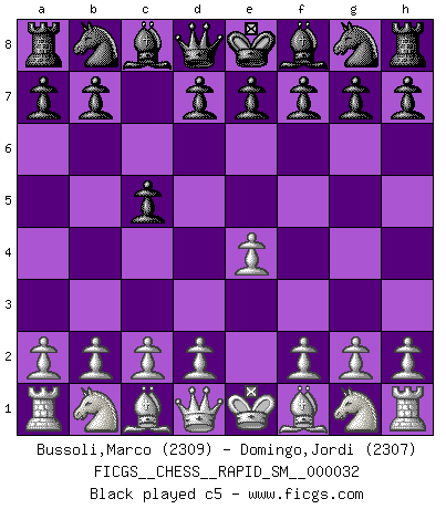 Last move : Kg6 2026 February 2 16:24:29 White clock - 3 days 12:16:54 Black clock - 44 days 18:37:14 [Event "FICGS__CHESS__RAPID_SM__000032"] [Site "FICGS"] [Date "2025.11.03"] [Round "1"] [White "Bussoli,Marco"] [Black "Domingo,Jordi"] [Result "*"] [WhiteElo "2309"] [BlackElo "2307"] 1.e4 c5 2.Nf3 h6 3.d4 cxd4 4.Nxd4 Nf6 5.Nc3 e5 6.Nf5 d6 7.Ne3 Be6 8.g3 Be7 9.f4 O-O 10.Qf3 Nc6 11.f5 Bd7 12.Qg2 Nd4 13.Bd3 Bc6 14.O-O Rc8 15.Kh1 Re8 16.Rb1 Nd7 17.h4 Nc5 18.Bd2 Nxd3 19.cxd3 Qb6 20.Rbd1 Qxb2 21.Ned5 Bxd5 22.Nxd5 Rc2 23.Rf2 Bd8 24.Be3 Rxf2 25.Qxf2 Qxf2 26.Bxf2 Nc6 27.Rb1 b6 28.Kg2 Ne7 29.Rc1 Nxd5 30.exd5 h5 31.Kf3 Re7 32.Rc8 Rd7 33.Be3 Kh7 34.Bg5 Bxg5 35.hxg5 f6 36.g4 g6 37.gxf6 gxf5 38.g5 Kg6 39.Rg8+ Kh7 40.Ra8 Kg6 41.* Follow this game move after move (download)Chess is a matter of delicate judgment, knowing when to punch and how to duck. (Bobby Fischer) Ich verlor meine Bürgerrechte, mein Gehalt wurde mir nicht mehr bezahlt und ich wurde zensiert und durfte nicht mehr ins Ausland reisen. [nach dem Match Fischer-Taimanov 6:0] (Mark Taimanov) No solamente yo pronostico su triunfo sobre Botvinnik, sino que me adelanto y digo que probablemente Fischer es el jugador de Ajedrez mas grande que haya existido. (John Collins) Le jeu d'échecs fait naître et fortifie en nous plusieurs qualités précieuses dans le cours de l'existence, telles que la prévoyance, la circonspection, la prudence, et la persévérance. (Benjamin Franklin - 1783, la morale des échecs) Do you know these so called Volunteers don't even get paid! (Simpsons)