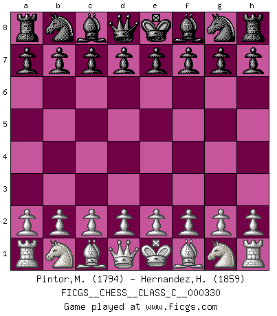 Last move : 0-1 2025 December 1 3:1:44 [Event "FICGS__CHESS__CLASS_C__000330"] [Site "FICGS"] [Date "2025.11.05"] [Round "1"] [White "Pintor,Manuel"] [Black "Hernandez,Humberto"] [Result "0-1"] [WhiteElo "1794"] [BlackElo "1859"] 1.e4 e6 2.f4 d5 3.exd5 exd5 4.Nf3 Be7 5.d4 Nf6 6.Bd3 c5 7.c4 O-O 8.O-O cxd4 9.h3 dxc4 10.Bxc4 Nc6 11.Kh1 Bf5 12.Nbd2 Rc8 13.Ne5 Nb4 14.Bb3 Nc2 15.Bxc2 Bxc2 16.Qf3 Qd5 17.Qxd5 Nxd5 18.Rf3 Rfe8 19.b3 f6 20.Nec4 b5 21.Na3 Bxa3 22.Bxa3 Re2 23.Nf1 Be4 24.Rg3 Nxf4 25.Bc1 Nxg2 26.Ba3 Nf4 27.Kg1 Nxh3+ 28.Rxh3 Rg2+ 29.Kh1 R8c2 0-1 Follow this game move after move (download)It's just you and your opponent at the board and you're trying to prove something. (Bobby Fischer) Wer sich die Fähigkeit anerziehen will im Schach selbstständig zu denken, der muß alles meiden, was leblos ist: ausgeklügelte Theorien, die sich auf sehr wenige Beispiele und eine Menge Hirngespinste stützen. (Emanuel Lasker) Por la belleza de sus partidas, la claridad de su juego y lo brillante de sus ideas, Fischer se creó el mismo como un artista de la misma estatura como Brahms, Rembrandt y Shakespeare. (David Levy) La solitude du joueur d'Echecs à l'approche du mat est semblable à celle du condamné. (Francis Szpiner) Better than a thousand days of diligent study is one day with a great teacher. (Japanese proverb)