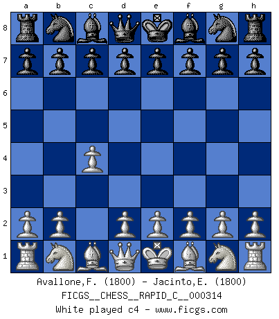 Last move : cxd4 2026 February 8 14:57:6 Francesca Avallone ... is in vacation until 2026 February 18 18:40:59 White clock - 6 days 16:51:05 Black clock - 20 days 00:00:07 [Event "FICGS__CHESS__RAPID_C__000314"] [Site "FICGS"] [Date "2025.11.15"] [Round "1"] [White "Avallone,Francesca"] [Black "Jacinto,Estefanie Grace"] [Result "*"] [WhiteElo "1800"] [BlackElo "1800"] 1.c4 e5 2.Nc3 Nf6 3.Nf3 Nc6 4.e4 Bb4 5.d3 d6 6.a3 Bc5 7.Na4 Bg4 8.Nxc5 dxc5 9.Be3 Bxf3 10.Qxf3 Nd4 11.Bxd4 Qxd4 12.Rb1 a5 13.Be2 Ke7 14.Qg3 h6 15.f4 Nd7 16.f5 Rab8 17.Kd2 b5 18.Kc2 Rb6 19.Qe1 bxc4 20.Qc3 Rhb8 21.Qxd4 cxd4 22.* Follow this game move after move (download)Bobby just drops the pieces and they fall on the right squares. (Miguel Najdorf) Vielleicht wirkt die Aura früherer Spieler glanzvoller als die der heutigen Spieler, aber das liegt daran, dass man kein Programm wie Fritz hatte, das einem all die Löcher in ihren Partien zeigt. (Vladimir Kramnik) Bobby Fischer es el mas grande genio de Ajedrez de todos los tiempos. (Alexander Kotov) Les Echecs mettent en conflit, non pas deux intelligences, mais deux volontés. (Lasker) All politicians must be presumed guilty until they are proven innocent. (Dinesh De Silva)