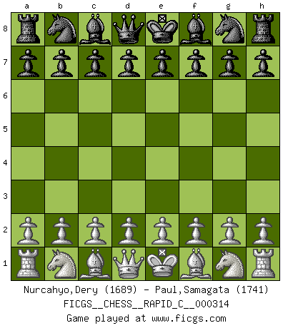 Last move : 0-1 2026 January 30 14:52:15 [Event "FICGS__CHESS__RAPID_C__000314"] [Site "FICGS"] [Date "2025.11.15"] [Round "1"] [White "Nurcahyo,Dery"] [Black "Paul,Samagata"] [Result "0-1"] [WhiteElo "1689"] [BlackElo "1741"] 1.e4 e5 2.Nf3 Nc6 3.Nc3 a6 4.Bc4 h6 5.O-O Bc5 6.d3 d6 7.h3 Nf6 8.a3 O-O 9.b4 Ba7 10.Be3 Nd4 11.Nd5 Nxd5 12.exd5 b5 13.Ba2 f5 14.Nxd4 exd4 15.Bd2 Qf6 16.f4 Bd7 17.Qf3 Rae8 18.Rac1 Bb6 19.c4 Re7 20.c5 Ba7 21.Be1 Re3 22.Qd1 Qg6 23.cxd6 Qxd6 24.Qc2 Bb6 25.Bd2 Rg3 26.Kh2 Rg6 27.Rce1 h5 28.Re2 Re8 29.Rfe1 Kf8 30.Bc1 h4 31.Re5 Rg3 32.Rxe8+ Bxe8 33.Bb2 Qxf4 34.Kh1 Bh5 35.Kg1 Bf3 36.Bc1 Qd6 37.Re6 Qd8 38.Kf1 Bxg2+ 39.Qxg2 Rxg2 40.Kxg2 Qd7 41.Bg5 c6 42.Rxc6 Bd8 43.Bf4 Qe8 44.Re6 Qh5 45.Bd6+ Kg8 46.Bc5 Bf6 47.d6 Kh7 48.Bd5 Qg5+ 49.Kf1 Qc1+ 50.Re1 Qf4+ 51.Ke2 Qe3+ 52.Kd1 Qxd3+ 53.Kc1 Qxa3+ 54.Kd1 Qd3+ 55.Kc1 Bg5+ 0-1 Follow this game move after move (download)We must make sure that Chess will not be like a dead language, very interesting, but for a very small group. (Sytze Faber) Drei Punkte vor allen anderen ist wie einer, der im weißen Anzug posiert, während der Rest in Müllsäcke gekleidet dasteht. (Viktor Kortschnoi) En un gambito tu regalas un Peón por el bién de tomar un juego perdido. (Samuel Standige Boden) Il n'y a pas eu de défaite parce que je ne crois pas que cet ordinateur ait jamais existé. IBM a triché en refusant d'imprimer les modes de recherche de la machine. C'est évident, pendant le match, des coups décisifs ont été joués par des êtres humains. Aujourd'hui, les meilleurs spécialistes en informatique ne peuvent toujours pas expliquer comment Deep-Blue a pu jouer contre la logique des ordinateurs. IBM a gagné une guerre de communication, mais ils sont incapables de prouver que l'ordinateur a gagné tout seul. (Garry Kasparov) The greatest con, that he ever pulled... was making you believe... that he is you. (Revolver, movie)