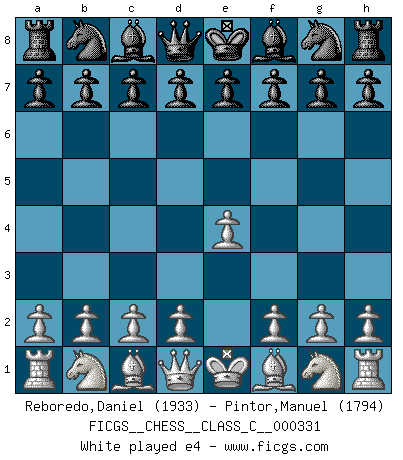Last move : 1-0 2025 December 19 0:57:31 [Event "FICGS__CHESS__CLASS_C__000331"] [Site "FICGS"] [Date "2025.11.17"] [Round "1"] [White "Reboredo,Daniel"] [Black "Pintor,Manuel"] [Result "1-0"] [WhiteElo "1933"] [BlackElo "1794"] 1.e4 e5 2.Nf3 Nc6 3.Bc4 Qf6 4.Nc3 Qg6 5.O-O Bc5 6.d3 Nf6 7.Nh4 Qg4 8.Qxg4 Nxg4 9.Nf5 O-O 10.h3 Nf6 11.Bg5 Nh5 12.g4 Nf4 13.Bxf4 exf4 14.Nd5 Bd6 15.Nxd6 f3 16.Nf5 d6 17.Nfe7+ Nxe7 18.Nxe7+ Kh8 19.Nd5 c6 20.Ne3 a5 21.a4 g6 22.Kh2 Be6 23.Kg3 Bxc4 24.Nxc4 d5 25.exd5 cxd5 26.Nd2 f5 27.g5 Rfe8 28.Kxf3 Re6 29.Rfe1 Rae8 30.Rxe6 Rxe6 31.Kg2 Re2 32.Rd1 Kg7 33.Kf1 Re6 34.Re1 Rb6 35.b3 Rc6 36.c4 dxc4 37.dxc4 Kf7 38.Ke2 Rd6 39.Kd1 Rd3 40.Re3 Rd4 41.Kc2 Rf4 42.f3 Rh4 43.Re5 b6 44.Rb5 Rxh3 45.Rxb6 Rg3 46.Rb7+ Kg8 47.c5 Rxg5 48.f4 1-0 Follow this game move after move (download)Pawns: they are the soul of this game, they alone form the attack and defense. (Philidor) Ich suche im Schach immer etwas Eigenes. Riskantes Spiel im Stile schachlicher Musketiere ist nicht meine Sache, auch wenn es vielen Freunden scharfer Wendungen gefällt. (Anatoly Karpov) El Ajedrez tiene tanto misterio como las mujeres. (Purdy) Le profane ne songe pas à la somme de jouissance dont il se prive, qui méconnaît ce jeu aux ressources aussi variées que passionnantes. (Jean-Marie Jeanton-Lamarche) All battles are fought by scared men who'd rather be someplace else. (John Wayne in the movie In harm's way)