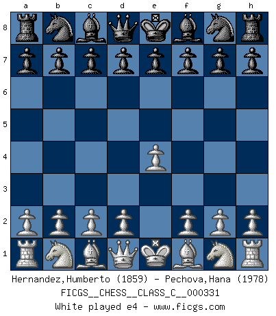 Last move : Be7 2025 December 31 12:4:14 White clock - 34 days 03:36:03 Black clock - 0 day 01:02:30 [Event "FICGS__CHESS__CLASS_C__000331"] [Site "FICGS"] [Date "2025.11.17"] [Round "1"] [White "Hernandez,Humberto"] [Black "Pechova,Hana"] [Result "*"] [WhiteElo "1859"] [BlackElo "1978"] 1.e4 c5 2.Nf3 Nc6 3.d4 cxd4 4.Nxd4 Nf6 5.Nc3 e5 6.Ndb5 d6 7.Bg5 a6 8.Na3 b5 9.Nd5 Be7 10.* At least one player has less than 1 day left in this game ! This page will be refreshed every 10 seconds. If you do not see the clock above, your browser could not support Frames & Javascript or it could be turned off. In this case you will have to refresh the page handly. Follow this game move after move (download)Could we look into the head of a Chess player, we should see there a whole world of feelings, images, ideas, emotion and passion. (Alfred Binet) Der Knackpunkt bei der Konzentration ist, daß wir nur durch sie etwas Neues und Ungewöhnliches am Schachbrett finden können. Sie ist der einzige Weg durch neue neue Ideen eine Überraschung zu bereiten. (Garry Kasparov) La estratégia requiere pensar, la táctica requiere observación. (Max Euwe) Si rien de grave n'est détecté lors de l'analyse d'une position, on joue alors le coup. Seconde règle de Blumenfeld. There's always a bigger fish. (Qui-Gon Jinn in Star Wars ep.1)