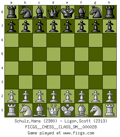 Last move : 0-1 2026 January 4 16:35:57 [Event "FICGS__CHESS__CLASS_SM__000028"] [Site "FICGS"] [Date "2025.11.24"] [Round "1"] [White "Schulz,Hans"] [Black "Ligon,Scott"] [Result "0-1"] [WhiteElo "2380"] [BlackElo "2313"] 0-1 This chess game has been lost on time (started : 2025.11.24 22:9:2) Follow this game move after move (download)It is the aim of the modern school, not to treat every position according to one general law, but according to the principle inherent in the position. (Richard Reti) Ich möchte Schüler heranbilden, die das Vermögen haben, selbst zu denken und Kritik zu üben. (Emanuel Lasker) Repentinamente, me resultaba obvio en mi analisis que yo había pasado por alto lo que Fischer había visto en el tablero con la mas grande facilidad. (Mikhail Botvinnik) Psychologiquement, tu dois avoir confiance en toi même, mais cette confiance doit être basée sur des faits. (Robert Fischer) What doesn't kill us makes us stronger. (Friedrich Nietzsche)