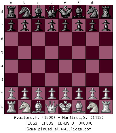 Last move : O-O 2026 January 9 1:23:20 White clock - 14 days 01:38:05 Black clock - 28 days 18:26:18 [Event "FICGS__CHESS__CLASS_D__000308"] [Site "FICGS"] [Date "2025.11.27"] [Round "1"] [White "Avallone,Francesca"] [Black "Martinez,Silvio"] [Result "*"] [WhiteElo "1800"] [BlackElo "1412"] 1.b4 Nf6 2.Bb2 d5 3.e3 Nc6 4.a3 e5 5.b5 Ne7 6.Bxe5 Nf5 7.Nf3 Bd6 8.d4 O-O 9.* Follow this game move after move (download)I like the moment when I break a man's ego. (Bobby Fischer) Jeder weiß, dass Gasprom Putins persönliches Machtinstrument ist. Die Firma wird vom Kreml aus geleitet und wird schon deshalb nie transparent sein. (Garry Kasparov) El Ajedrez, como cualquier otra actividad creativa, puede existir solo a través de méritos combinados de aquellos que tienen talento creativo y de aquellos que tienen la habilidad de organizar un trabajo creativo. (Mikhail Botvinnik) La vérité est comme le meilleur coup aux échecs : elle existe, mais il faut la chercher. (Arturo Perez-Reverte) Secret operations are essential in war; upon them the army relies to make its every move. (Sun Tzu)