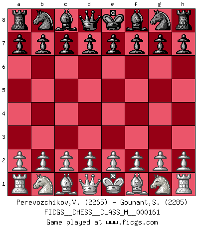 Last move : 1/2-1/2 2025 December 19 18:29:4 [Event "FICGS__CHESS__CLASS_M__000161"] [Site "FICGS"] [Date "2025.12.02"] [Round "1"] [White "Perevozchikov,Vjacheslav"] [Black "Gounant,Stanislas"] [Result "1/2-1/2"] [WhiteElo "2265"] [BlackElo "2285"] 1.e3 b6 2.c4 Bb7 3.b4 g6 4.Bb2 Nf6 5.Nf3 c5 6.bxc5 bxc5 7.Nc3 Bg7 8.Rb1 d6 9.Be2 Nbd7 10.O-O Rb8 11.Qa4 a6 12.Ba1 e6 13.d3 h6 14.Nd2 O-O 15.h3 Qc7 16.Bf3 Bxf3 17.Nxf3 Rxb1 18.Rxb1 Ra8 19.Rb3 Qc8 20.Ne2 Ne8 1/2-1/2 Follow this game move after move (download)If your opponent cannot do anything active, then don't rush the position; instead you should let him sit there, suffer, and beg you for a draw. (Jeremy Silman) Meine Liebe ist Schach, Schach, Schach. Ich muss jeden Tag Schach spielen, deshalb fühle ich mich so stark. (Miguel Najdorf) Sin errores no puede haber brillantez. (Emanuel Lasker) L'attaque fait le spectacle, la défense gagne les matchs. (Dicton footballistique) I've lost money so fast in these clubs it's left me reeling. I've read every poker book ever written, but the only way to get better at the game is to go out and play with people who are really good. The problem is, you stand to lose a lot of money doing it. (Matt Damon)