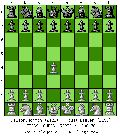 Last move : 1/2-1/2 2026 January 17 10:41:29 [Event "FICGS__CHESS__RAPID_M__000178"] [Site "FICGS"] [Date "2025.12.12"] [Round "1"] [White "Wilson,Norman"] [Black "Faust,Dieter"] [Result "1/2-1/2"] [WhiteElo "2126"] [BlackElo "2156"] 1.d4 d5 2.c4 c6 3.Nf3 Nf6 4.Nc3 dxc4 5.a4 e6 6.e3 c5 7.Bxc4 cxd4 8.exd4 Be7 9.Ne5 O-O 10.O-O a6 11.Bf4 Nc6 12.Nxc6 bxc6 13.a5 Bb7 14.Be5 c5 15.Qb3 cxd4 16.Qxb7 dxc3 17.Bxc3 Bd6 18.Ra4 Qb8 19.Qxb8 Rfxb8 20.Rd1 Bc5 21.Kf1 Be7 22.Be5 Rb7 23.g3 Kf8 24.Kg2 g6 25.h3 Ke8 26.Rb1 Nd7 27.Bc3 Bf6 28.Ra3 Bxc3 29.Rxc3 Rab8 30.Bxa6 Ra7 31.Rc6 Kd8 32.Bf1 Rxa5 33.b4 Ra7 34.b5 Rab7 35.h4 h5 36.f4 1/2-1/2 Follow this game move after move (download)Those who say they understand Chess, understand nothing. (Robert Hubner) Das ganze Leben mit einer Ehefrau ist wie ein Endspiel mit ungleichfarbigen Läufern. (Viktor Kortschnoi) La belleza de un movimiento no se refleja solo en su apariencia, sino en el pensamiento detrás de él. (Siegbert Tarrasch) Une platitude souvent récitée à propos des Echecs est qu'une des choses les plus difficiles à réaliser est de gagner une position gagnante. Cela ne manque pas de sens mais, pour ma part, j'ai toujours trouvé plus difficile de gagner une position perdante. (Tim Krabbe) Have no fear of perfection - you'll never reach it. (Salvador Dali)