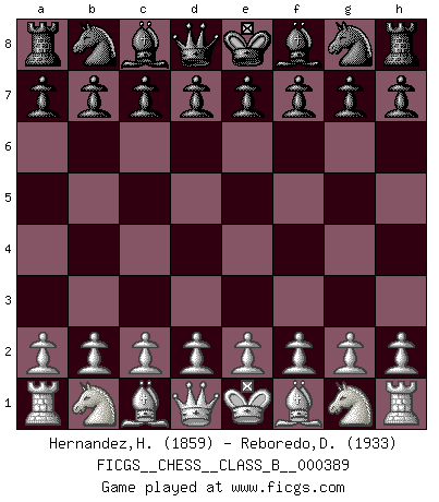 Last move : 1/2-1/2 2026 January 19 18:2:19 [Event "FICGS__CHESS__CLASS_B__000389"] [Site "FICGS"] [Date "2025.12.22"] [Round "1"] [White "Hernandez,Humberto"] [Black "Reboredo,Daniel"] [Result "1/2-1/2"] [WhiteElo "1859"] [BlackElo "1933"] 1.e4 e5 2.Nf3 Nc6 3.Bb5 a6 4.Bxc6 dxc6 5.O-O Bg4 6.h3 h5 7.d3 Qf6 8.Nbd2 Ne7 9.Re1 Ng6 10.d4 Bd6 11.hxg4 hxg4 12.Nh2 Rxh2 13.Qxg4 Rh4 14.Qf5 exd4 15.Nf3 Rh7 16.Bg5 Qe6 17.Qxe6+ fxe6 18.Nxd4 Kf7 19.Rad1 Rah8 20.Kf1 Rh1+ 21.Ke2 Rxe1+ 22.Rxe1 Bf4 1/2-1/2 Follow this game move after move (download)On the chessboard, lies and hypocrisy do not survive long. (Emanuel Lasker) Das Blackmar-Diemer-Gambit verändert den ganzen Menschen! (Emil Joseph Diemer) Evita las multitudes. Haz independientemente tu propio razonamiento. Trata de ser el jugador de Ajedrez, no la pieza de Ajedrez. (Ralph Charell) Pour moi, les échecs ne sont pas un jeu mais un art. (Alexandre Alekhine) Every vice is only an exaggeration of a necessary and virtuous function. (Ralph Waldo Emerson, Journals 1936)