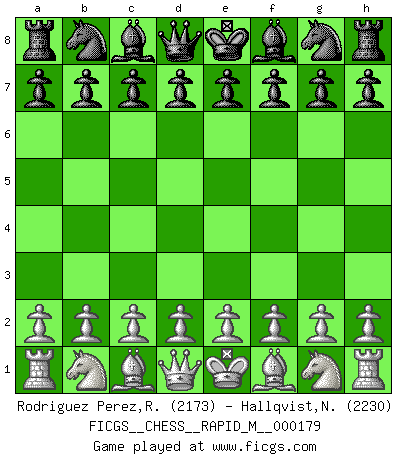First move 2026 January 2 2:36:44 White clock - 29 days 17:27:50 Black clock - 30 days 00:00:00 [Event "FICGS__CHESS__RAPID_M__000179"] [Site "FICGS"] [Date "2026.01.02"] [Round "1"] [White "Rodriguez Perez,Rene"] [Black "Hallqvist,Niklas"] [Result "*"] [WhiteElo "2173"] [BlackElo "2230"] 1.* Follow this game move after move (download)I played Chess with him and would have beaten him sometimes only he always took back his last move, and ran the game out differently. (Mark Twain) Wenn ich gewinne bin ich ein Genie. Wenn nicht, dann bin ich keines. (Robert James Fischer) Siempre es mucho mejor sacrificar las piezas de tu oponente. (Savielly Tartakover) Le thème de l'attaque double intervient d'une manière ou d'une autre dans l'immense majorité des combinaisons. (Youri Averbakh) Imagination is more important than knowledge. Knowledge is limited. Imagination encircles the world. (Albert Einstein)