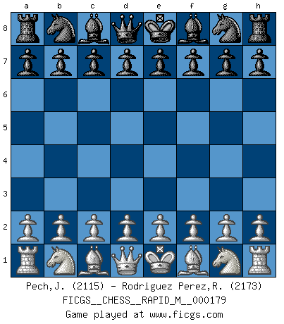 First move 2026 January 2 2:36:44 White clock - 29 days 17:27:50 Black clock - 30 days 00:00:00 [Event "FICGS__CHESS__RAPID_M__000179"] [Site "FICGS"] [Date "2026.01.02"] [Round "1"] [White "Pech,Jaroslav"] [Black "Rodriguez Perez,Rene"] [Result "*"] [WhiteElo "2115"] [BlackElo "2173"] 1.* Follow this game move after move (download)Chess is war over the board. The object is to crush the opponents mind. (Bobby Fischer) Ein Remis kann durch Wiederholung von drei Zügen oder durch einen schlechte Zug erreicht werden. (Savielly Grigorievitsch Tartakower) Bendita sea la memoria de aquel que dio al mundo este juego inmortal. (A. G. Gardiner) On a dit que l'homme se distingue de l'animal par le fait qu'il achète plus de livres qu'il ne peut en lire. Je voudrais suggérer qu'inclure à la liste des livres quelques livres d'échecs rendrait la distinction manifeste. (Edward Lasker) If passion drives you, let reason holds the reins. (Benjamin Franklin)