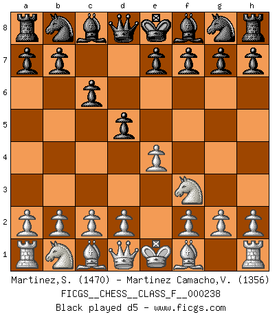 Last move : c6 2026 January 7 16:38:40 White clock - 35 days 07:32:35 Black clock - 39 days 09:00:24 [Event "FICGS__CHESS__CLASS_F__000238"] [Site "FICGS"] [Date "2026.01.03"] [Round "1"] [White "Martinez,Silvio"] [Black "Martinez Camacho,Victor Hugo"] [Result "*"] [WhiteElo "1470"] [BlackElo "1356"] 1.e4 c6 2.* Follow this game move after move (download)You sit at the board and suddenly your heart leaps. Your hand trembles to pick up the piece and move it. But what Chess teaches you is that you must sit there calmly and think about whether it's really a good idea and whether there are other better ideas. (Stanley Kubrick) Alle Schachspieler sollten auch ein Hobby haben. (Savielly Grigorievitsch Tartakower) El Ajedrez es un cuento de Hadas de las 1001 metidas de pata. (Savielly Tartakower) Ce qui caractérise les parties de combat, c'est que si le défenseur a constamment de difficiles problèmes à résoudre, l'attaquant doit chercher sans relâche de nouvelles possibilités d'attaque. (Koblentz) When a man with money meets a man with experience, the man with experience leaves with money and the man with money leaves with experience. (Anonymous)