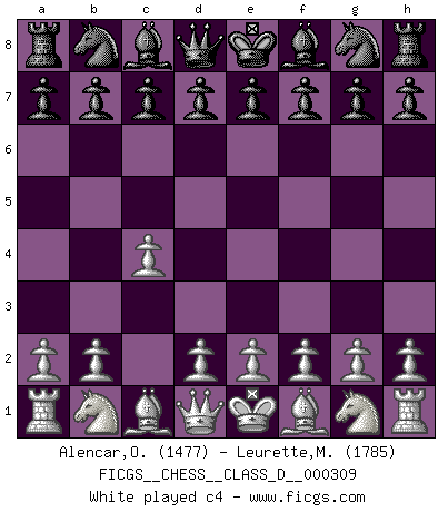 Last move : c4 2026 February 10 18:18:29 White clock - 39 days 23:52:57 Black clock - 39 days 17:08:31 [Event "FICGS__CHESS__CLASS_D__000309"] [Site "FICGS"] [Date "2026.02.10"] [Round "1"] [White "Alencar,Ofir"] [Black "Leurette,Marc-Antoine"] [Result "*"] [WhiteElo "1477"] [BlackElo "1785"] 1.c4 * Follow this game move after move (download)All Chess players should have a hobby. (Savielly Tartakower) Schach ist Leben. (Robert James Fischer) El Ajedrez es tan interesante por sí solo, que no es necesario un interés monetario para persuadir a una persona a que lo practique; por lo tanto, nunca se juega por dinero. (Benjamin Franklin) La conception d'un plan est le processus par lequel un joueur exploite les avantages de sa position tout en s'efforçant d'en réduire au minimum les inconvénients. Afin de garantir le succès, un plan doit toujours se fonder sur un diagnostic objectif des particularités d'une position. La conception d'un plan est d'autant plus difficile que la position est équilibrée, et grandement facilitée lorsqu'il n'existe qu'un seul plan susceptible de répondre aux exigences de la position. (Harry Golombek) There is a computer disease that anybody who works with computers knows about. It's a very serious disease and it interferes completely with the work. The trouble with computers is that you 'play' with them ! (Richard P. Feynman)