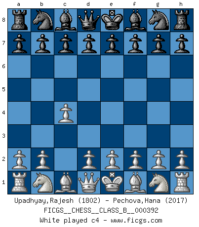 Last move : c4 2026 February 21 16:23:2 White clock - 39 days 21:44:30 Black clock - 39 days 09:42:55 [Event "FICGS__CHESS__CLASS_B__000392"] [Site "FICGS"] [Date "2026.02.21"] [Round "1"] [White "Upadhyay,Rajesh"] [Black "Pechova,Hana"] [Result "*"] [WhiteElo "1802"] [BlackElo "2017"] 1.c4 * Follow this game move after move (download)The blunders are all there on the board, waiting to be made. (Savielly Tartakover) Es hat in meinem Leben Zeiten gegeben, in denen das Schachspiel, wenn nicht zum Lebenszweck, so doch zu einem regelrechten Lebensersatz geworden ist. Man fühlt sich in solchen Zeiten nicht so, als besäße man eine göttliche Gabe, sondern eher so, als sei man von ihr besessen. (Garry Kasparov) Una compensación adecuada por un sacrificio es tener una combinación sólida que conduce a una posición ganadora; una compensación adecuada por una metida de pata es dejar a tu oponente arrebatar una derrota de las fauces de la victoria. (Bruce A. Moon) La tactique est l'élément le plus important du milieu de jeu. (Siegbert Tarrasch) Control your own destiny or someone else will. (Jack Welch)