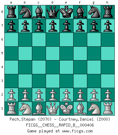 First move 2026 February 26 11:0:32 White clock - 28 days 11:20:38 Black clock - 30 days 00:00:00 [Event "FICGS__CHESS__RAPID_B__000406"] [Site "FICGS"] [Date "2026.02.26"] [Round "1"] [White "Pech,Stepan"] [Black "Courtney,Daniel"] [Result "*"] [WhiteElo "2070"] [BlackElo "2000"] 1.* Follow this game move after move (download)Fischer wanted to give the Russians a taste of their own medicine. (Larry Evans) Ich kenne Menschen, die allen Willen der Welt besitzen und doch nicht Schach spielen können. (Robert James Fischer) ¿Esta Bobby Fischer algo cuerdo?. (Salo Flohr) La guerre est enfant de la passion, la passion est enfant du narcissisme et le narcissisme est l'enfant. (...) Une autre partie ? (Thibault de Vassal) Fame, I have already. Now I need the money. (an elderly Steinitz)